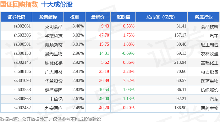 证券之星消息,10月20日,国证回购(980063)指数报收于3284.76点,涨0.91%,成交123.58亿元,换手率1.23%。当日该指数成份股中,上涨的有34家,平煤股份以9.1%的涨幅领涨,下跌的有15家,大名城以6.6%的跌幅领跌。