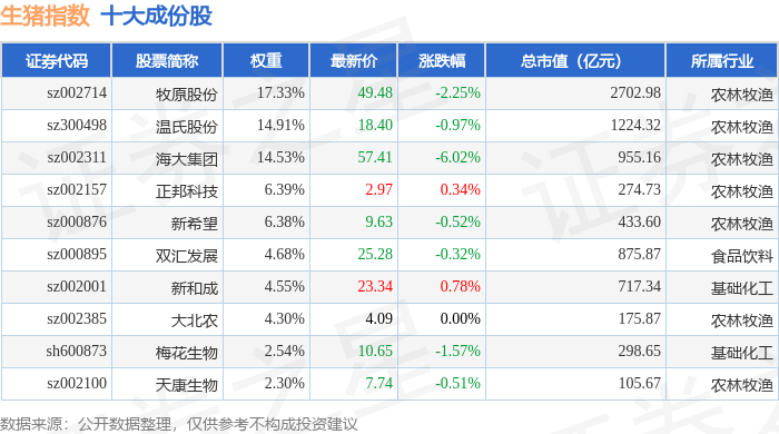 资金流向方面,生猪指数(980073)成份股当日主力资金净流出合计3.15亿元,游资资金净流出合计3009.9万元,散户资金净流入合计3.45亿元。成份股资金流向详情见下表:
