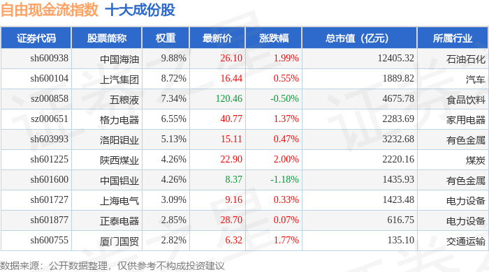 自由现金流(980092)指数十大成份股详情如下: