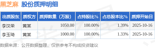 证券之星消息,黑芝麻(000716)10月20日公开信息显示,股东李汉荣、李玉琦向黄某合计质押2050.0万股,占总股本2.72%。质押详情见下表: