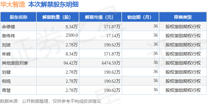 证券之星消息,根据市场公开信息整理,华大智造(688114)于10月21日将有122.47万股限售股份解禁,为公司股权激励期权行权,占公司总股本0.29%。(本次数据根据历史公告整理得出,实际情况以上市公司最新公告为准)最近一年内,该股累计解禁2.0亿股,占总股本的48.06%。本次解禁后,公司还有218.14万股限售股份,占总股本0.52%。具体如下图所示: