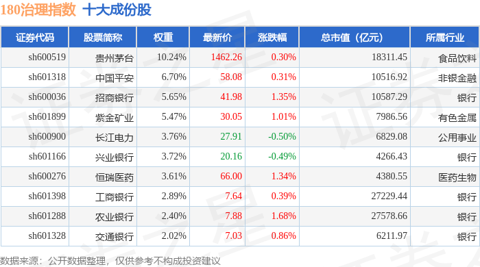 证券之星消息,10月21日,180治理(000021)指数报收于1067.91点,涨0.68%,成交1149.24亿元,换手率0.35%。当日该指数成份股中,上涨的有73家,生益科技以7.86%的涨幅领涨,下跌的有22家,兖矿能源以3.1%的跌幅领跌。