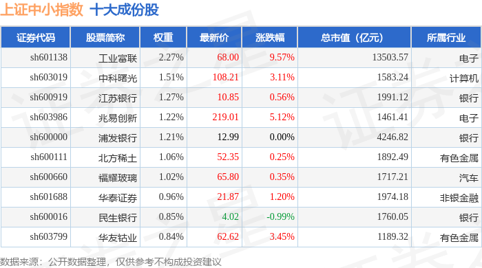 证券之星消息,10月21日,上证中小(000046)指数报收于5111.72点,涨1.29%,成交3439.58亿元,换手率1.3%。当日该指数成份股中,上涨的有345家,源杰科技以20.0%的涨幅领涨,下跌的有91家,新洁能以4.21%的跌幅领跌。