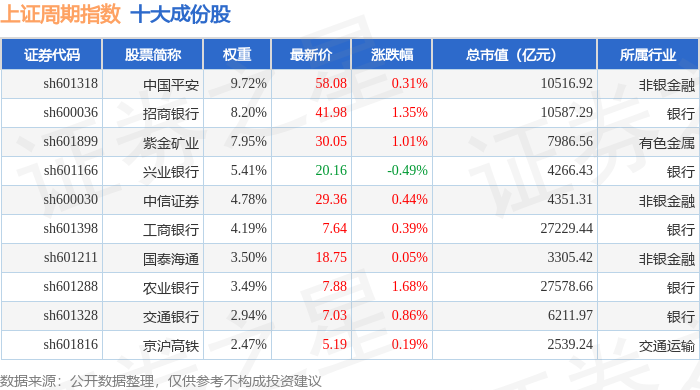 证券之星消息,10月21日,上证周期(000063)指数报收于3884.79点,涨0.53%,成交1029.72亿元,换手率0.38%。当日该指数成份股中,上涨的有36家,中国人寿以3.51%的涨幅领涨,下跌的有12家,兖矿能源以3.1%的跌幅领跌。