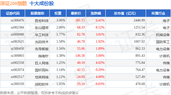 证券之星消息,10月21日,深证200(399009)指数报收于4983.61点,涨1.88%,成交1837.36亿元,换手率1.83%。当日该指数成份股中,上涨的有168家,菲利华以14.17%的涨幅领涨,下跌的有27家,燕京啤酒以4.56%的跌幅领跌。
