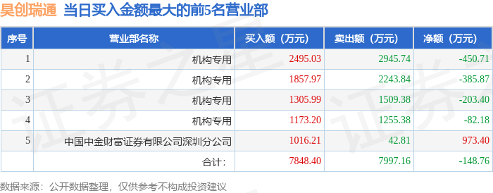 从龙虎榜公布的当日买卖数据来看,机构合计净卖出1709.01万元。