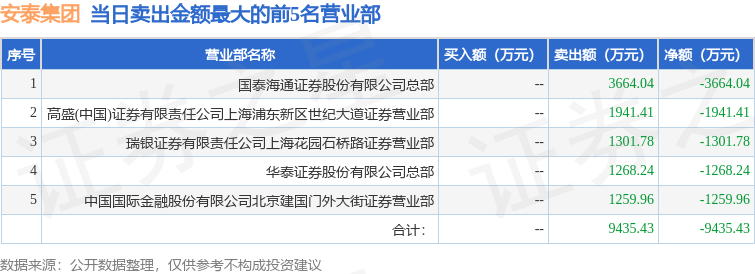 证券之星消息,沪深交易所2025年10月21日公布的交易公开信息显示,安泰集团(600408)因有价格涨跌幅限制的日收盘价格跌幅偏离值达到7%的前五只证券,有价格涨跌幅限制的日换手率达到20%的前五只证券登上龙虎榜。此次是近5个交易日内第4次上榜。