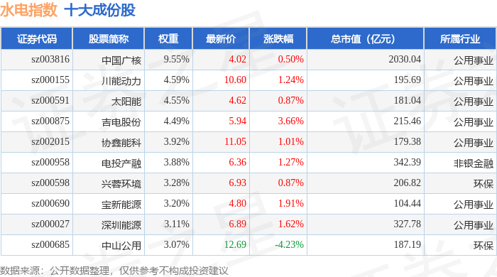 水电指数(399234)十大成份股详情如下:
