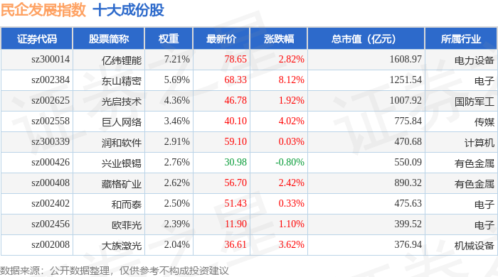资金流向方面,民企发展(399292)指数成份股当日主力资金净流入合计10.17亿元,游资资金净流出合计10.53亿元,散户资金净流入合计3561.4万元。成份股资金流向详情见下表: