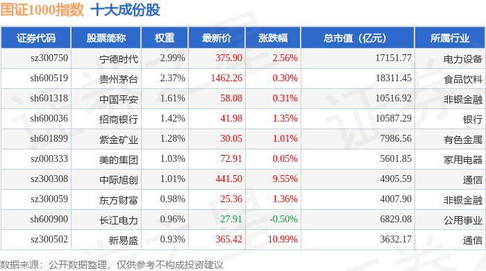证券之星消息,10月21日,国证1000(399311)指数报收于4881.06点,涨1.56%,成交9950.25亿元,换手率1.02%。当日该指数成份股中,上涨的有792家,菲利华以14.17%的涨幅领涨,下跌的有179家,燕京啤酒以4.56%的跌幅领跌。