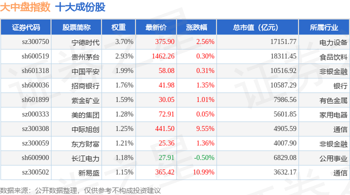 证券之星消息,10月21日,大中盘(399400)指数报收于4148.91点,涨1.59%,成交7298.35亿元,换手率0.81%。当日该指数成份股中,上涨的有385家,新易盛以10.99%的涨幅领涨,下跌的有100家,燕京啤酒以4.56%的跌幅领跌。