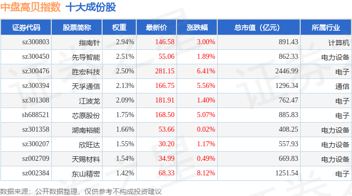 证券之星消息,10月21日,中盘高贝(399407)指数报收于3026.13点,涨1.96%,成交1523.3亿元,换手率2.66%。当日该指数成份股中,上涨的有91家,闻泰科技以9.99%的涨幅领涨,下跌的有8家,新诺威以1.86%的跌幅领跌。