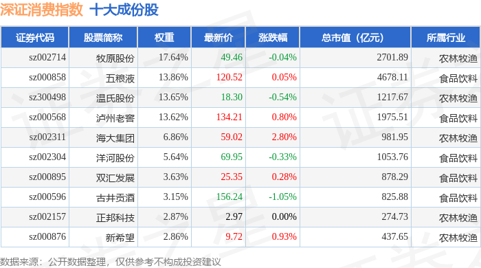资金流向方面,深证消费(399617)指数成份股当日主力资金净流出合计4111.82万元,游资资金净流入合计18.5万元,散户资金净流入合计4093.31万元。成份股资金流向详情见下表: