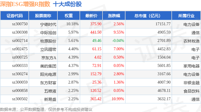 深指ESG增强R(470032)指数十大成份股详情如下: