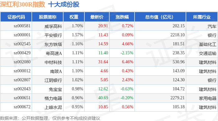 证券之星消息,10月21日,深红利300R(470062)指数报收于8044.37点,涨1.32%,成交1933.32亿元,换手率1.79%。当日该指数成份股中,上涨的有262家,裕同科技以9.98%的涨幅领涨,下跌的有35家,中山公用以4.23%的跌幅领跌。