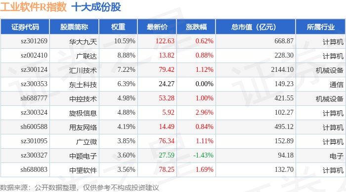 工业软件R(480034)指数十大成份股详情如下: