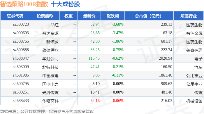智选策略100R(489015)指数十大成份股详情如下: