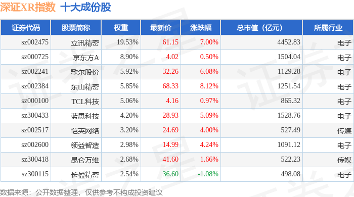 证券之星消息,10月21日,深证XR(970046)指数报收于2209.57点,涨3.43%,成交657.87亿元,换手率2.21%。当日该指数成份股中,上涨的有46家,东山精密以8.12%的涨幅领涨,下跌的有4家,亿道信息以6.62%的跌幅领跌。