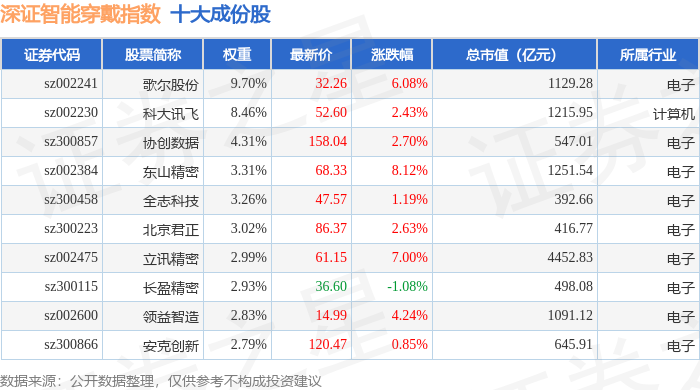 深证智能穿戴(970074)指数十大成份股详情如下:
