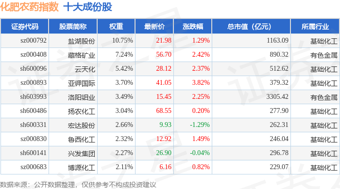 资金流向方面,化肥农药(980035)指数成份股当日主力资金净流入合计1.4亿元,游资资金净流入合计1.17亿元,散户资金净流出合计2.56亿元。成份股资金流向详情见下表: