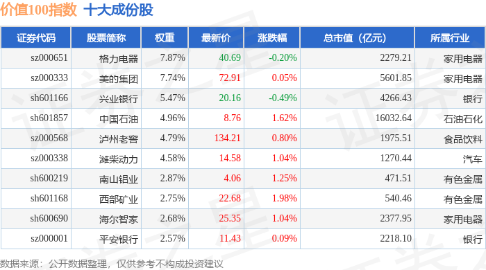 价值100(980081)指数十大成份股详情如下: