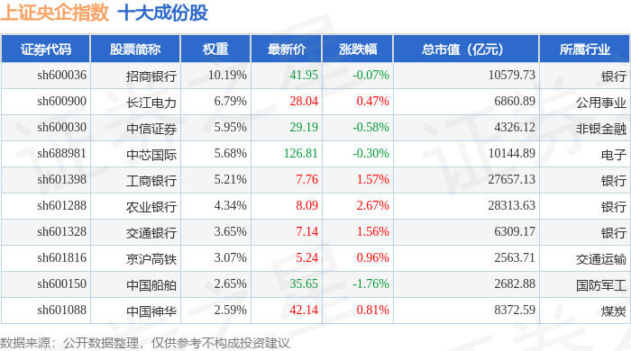 证券之星消息,10月22日,上证央企(000042)指数报收于1827.56点,涨0.26%,成交696.08亿元,换手率0.31%。当日该指数成份股中,上涨的有24家,中国海油以3.51%的涨幅领涨,下跌的有21家,中国软件以2.98%的跌幅领跌。