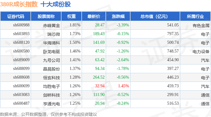 证券之星消息,10月22日,380R成长(000119)指数报收于4253.22点,跌0.98%,成交1227.98亿元,换手率1.57%。当日该指数成份股中,上涨的有89家,莱克电气以9.99%的涨幅领涨,下跌的有190家,科博达以10.0%的跌幅领跌。