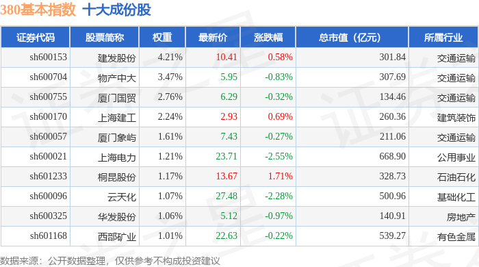 380基本(000128)指数十大成份股详情如下: