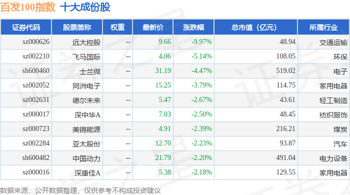 证券之星消息,10月22日,百发100(000851)指数报收于19874.35点,跌0.12%,成交452.25亿元,换手率1.4%。当日该指数成份股中,上涨的有44家,华塑控股以10.14%的涨幅领涨,下跌的有40家,远大控股以9.97%的跌幅领跌。