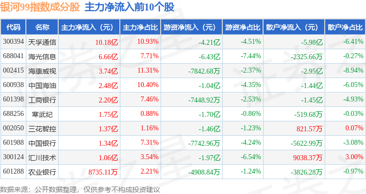 资金流向方面,银河99(000959)指数成份股当日主力资金净流出合计77.91亿元,游资资金净流入合计30.98亿元,散户资金净流入合计46.93亿元。成份股资金流向详情见下表: