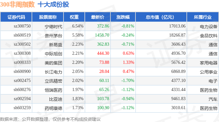 证券之星消息,10月22日,300非周(000969)指数报收于5358.79点,跌0.48%,成交3133.08亿元,换手率0.74%。当日该指数成份股中,上涨的有57家,天孚通信以7.08%的涨幅领涨,下跌的有131家,天赐材料以5.92%的跌幅领跌。