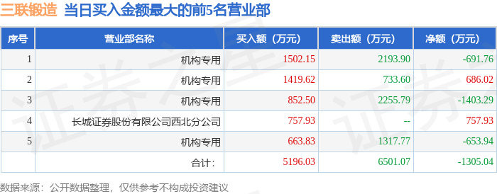 证券之星消息,沪深交易所2025年10月22日公布的交易公开信息显示,三联锻造(001282)因日换手率达到20%的前5只证券登上龙虎榜。此次是近5个交易日内第4次上榜。