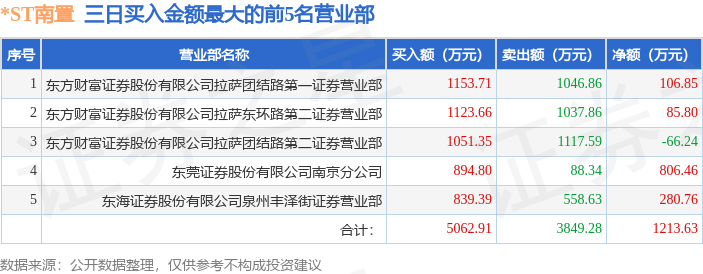 截至2025年10月22日收盘,*ST南置(002305)报收于2.85元,上涨5.17%,换手率4.34%,成交量75.32万手,成交额2.11亿元。