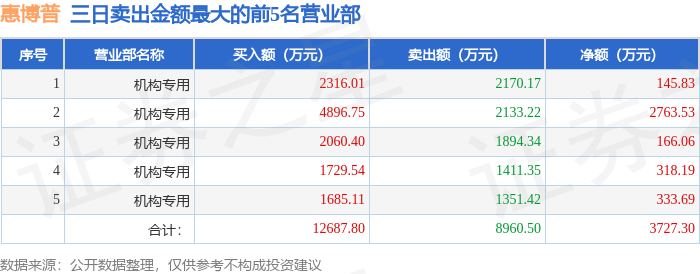 从龙虎榜公布的三日买卖数据来看,机构合计净买入3727.3万元。