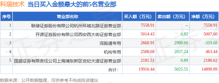 证券之星消息,沪深交易所2025年10月22日公布的交易公开信息显示,科瑞技术(002957)因日涨幅偏离值达到7%的前5只证券登上龙虎榜。此次是近5个交易日内第1次上榜。