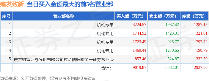 证券之星消息,沪深交易所2025年10月22日公布的交易公开信息显示,建发致新(301584)因日换手率达到30%的前5只证券登上龙虎榜。此次是近5个交易日内第3次上榜。