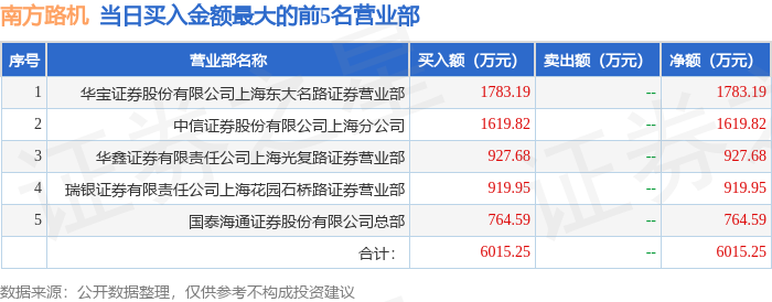 证券之星消息,沪深交易所2025年10月22日公布的交易公开信息显示,南方路机(603280)因有价格涨跌幅限制的日换手率达到20%的前五只证券登上龙虎榜。此次是近5个交易日内第1次上榜。