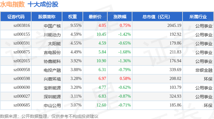 资金流向方面,水电指数(399234)成份股当日主力资金净流出合计6.18亿元,游资资金净流入合计3447.83万元,散户资金净流入合计5.84亿元。成份股资金流向详情见下表: