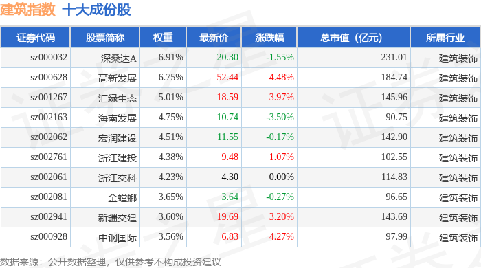 资金流向方面,建筑指数(399235)成份股当日主力资金净流出合计9743.63万元,游资资金净流出合计3.4亿元,散户资金净流入合计4.38亿元。成份股资金流向详情见下表: