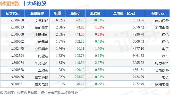 资金流向方面,制造指数(399233)成份股当日主力资金净流出合计169.18亿元,游资资金净流入合计39.63亿元,散户资金净流入合计129.55亿元。成份股资金流向详情见下表: