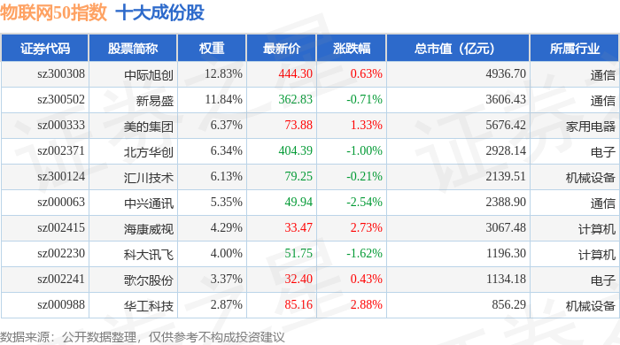 证券之星消息,10月22日,物联网50(399285)指数报收于5866.62点,跌0.47%,成交955.81亿元,换手率2.22%。当日该指数成份股中,上涨的有10家,华工科技以2.88%的涨幅领涨,下跌的有40家,广和通以7.89%的跌幅领跌。