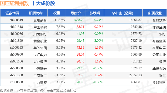 证券之星消息,10月22日,国证红利(399321)指数报收于7685.26点,涨0.32%,成交733.13亿元,换手率0.32%。当日该指数成份股中,上涨的有31家,中国海油以3.51%的涨幅领涨,下跌的有18家,紫金矿业以2.0%的跌幅领跌。