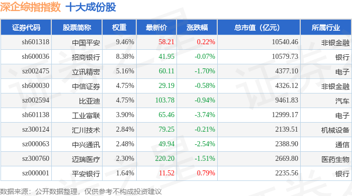 深企综指(399352)指数十大成份股详情如下: