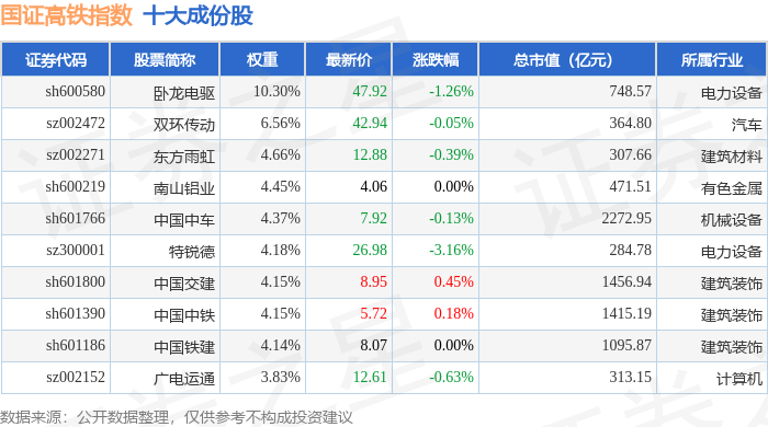 国证高铁(399419)指数十大成份股详情如下: