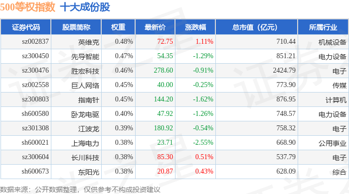 500等权(399982)指数十大成份股详情如下: