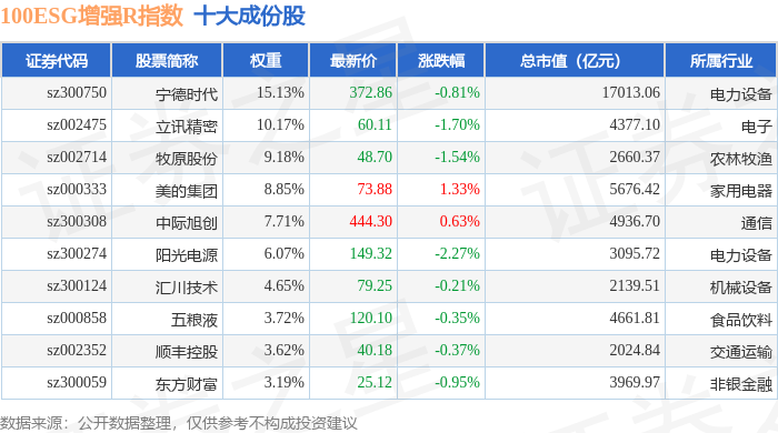100ESG增强R(470033)指数十大成份股详情如下: