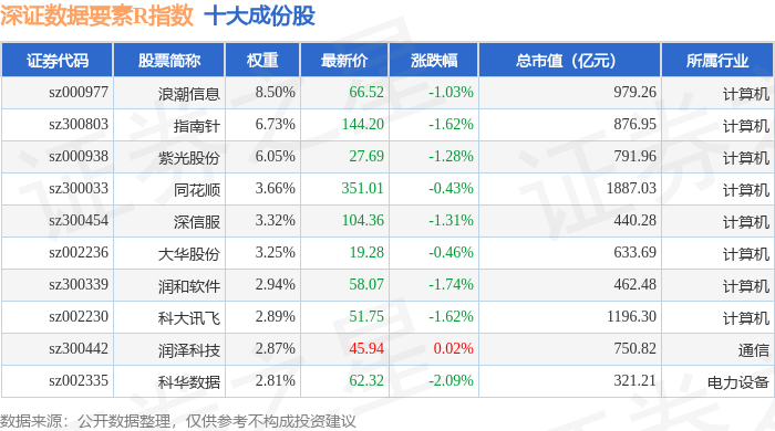 资金流向方面,深证数据要素R(470053)指数成份股当日主力资金净流出合计15.44亿元,游资资金净流入合计5.15亿元,散户资金净流入合计10.28亿元。成份股资金流向详情见下表: