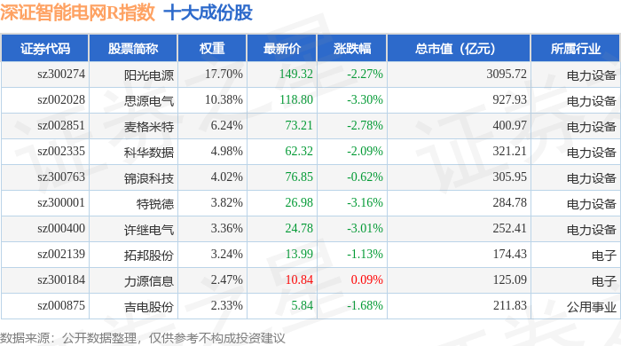 深证智能电网R(470054)指数十大成份股详情如下: