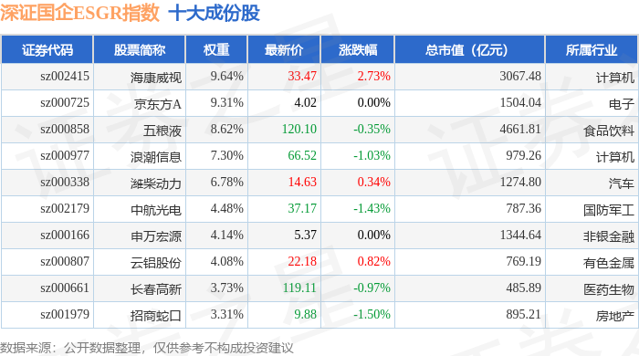 深证国企ESGR(470055)指数十大成份股详情如下: