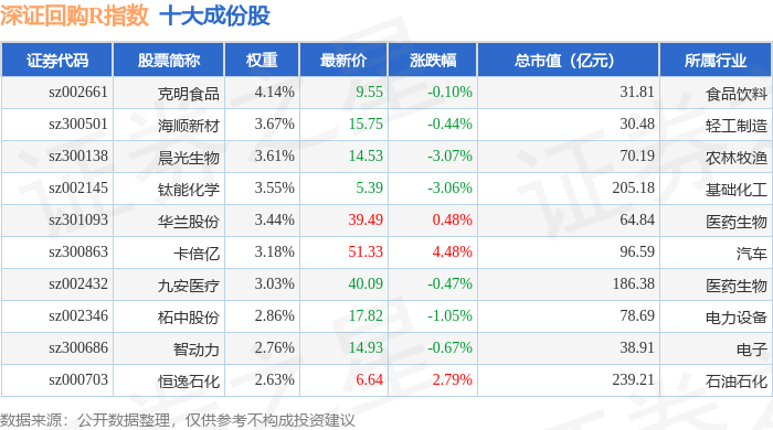 深证回购R(470063)指数十大成份股详情如下: